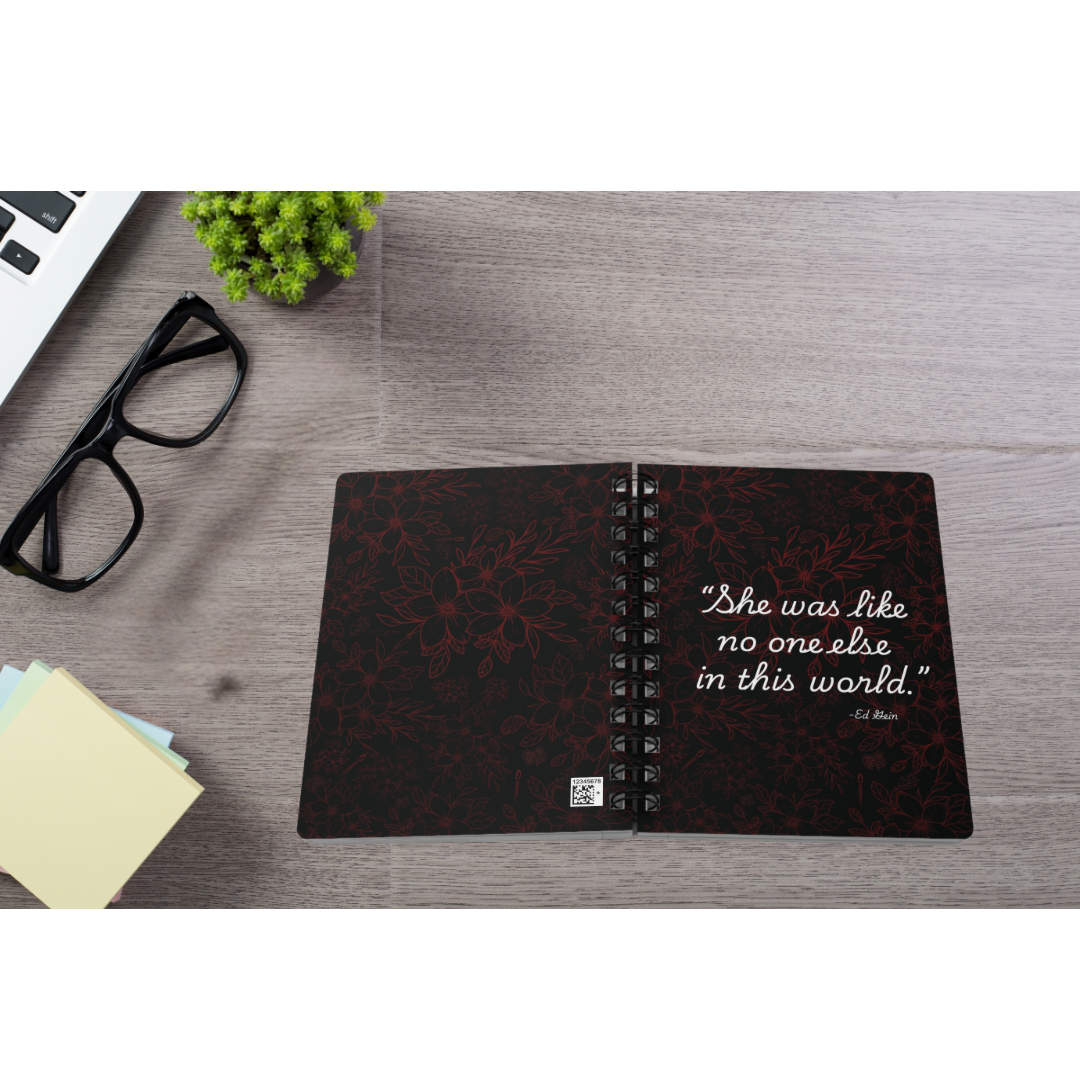 Write down all your creative thoughts in this statement piece of a journal. This affectionate loving quote was made by Ed Gein, the Butcher of Plainfield. Gein's quote refers to his mother whom he worshipped, but can make any woman feel unique despite his twisted brain. Perfect gift for any true crime enthusiast. The floral design is delicate, yet dark once you spot the little Easter eggs in it.