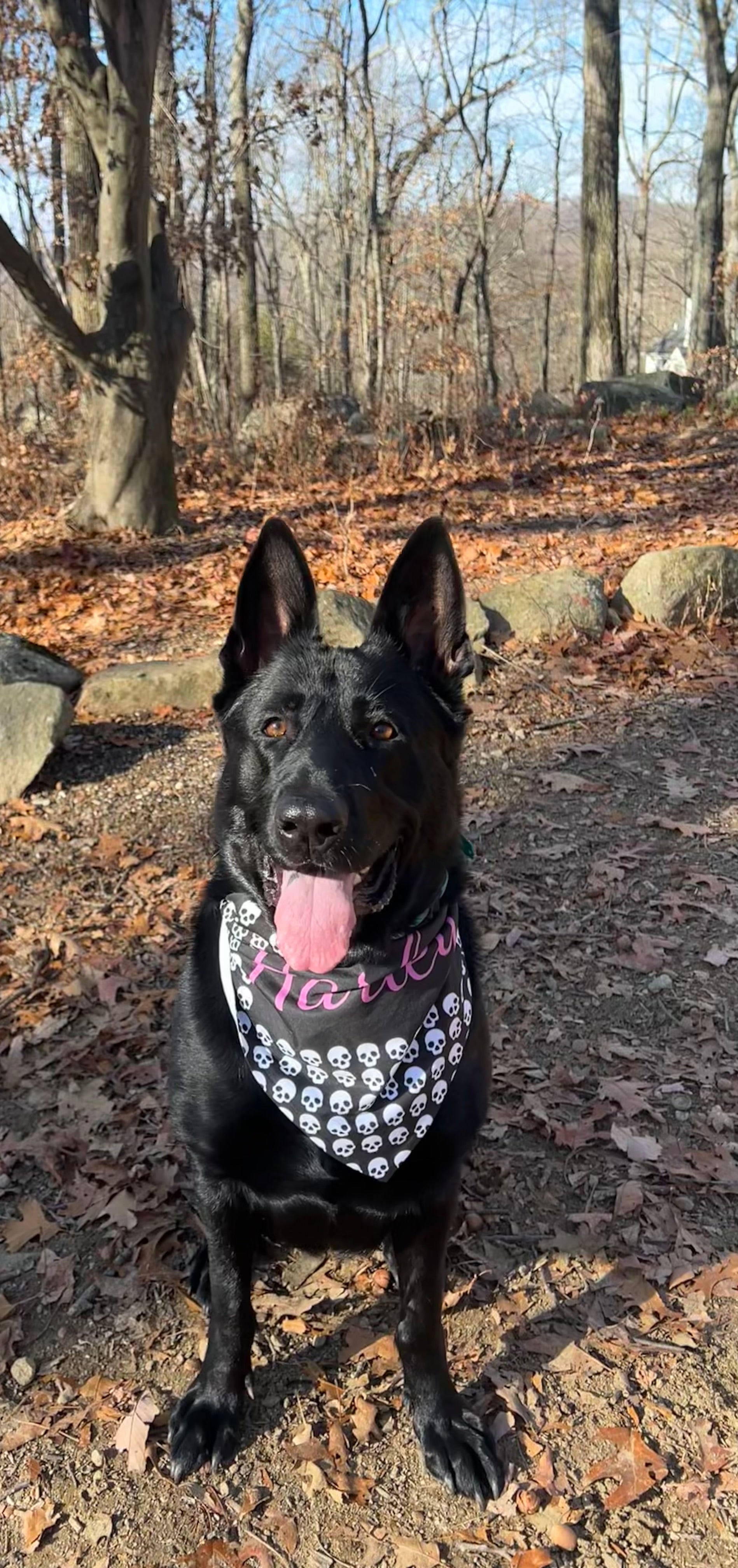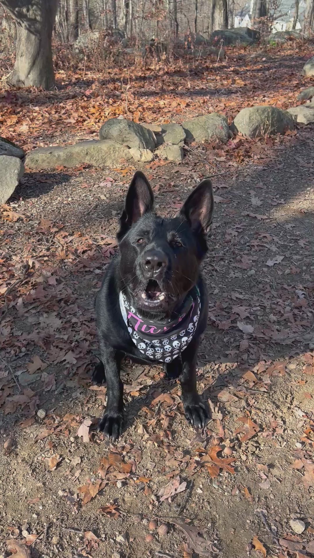 Our German Shepherd model is wearing the 27" x 13" bandana.